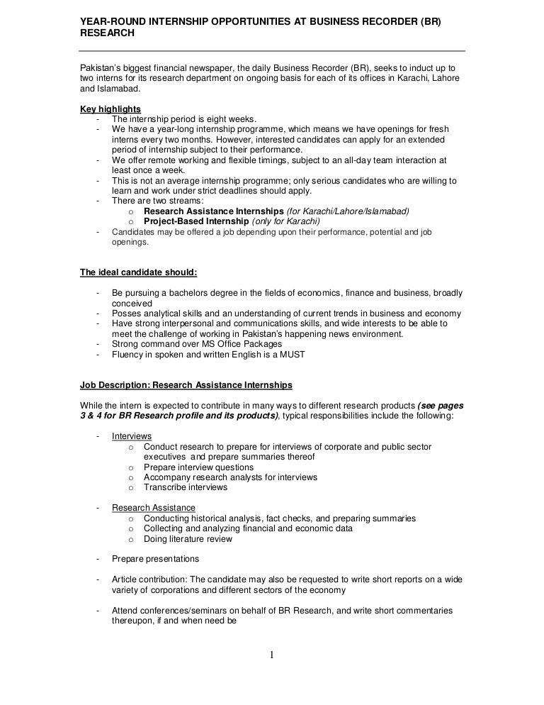 Year Round Internships At Business Recorder Research