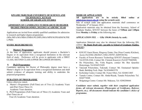 Knust distance learning postgraduate courses Apart full time and part time classes for masters courses there is the distance learning option.