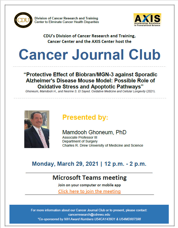 Cdu Cancer Journal Club With Dr Mamdooh Ghoneum March 29 Charles R Drew University Of Medicine And Science