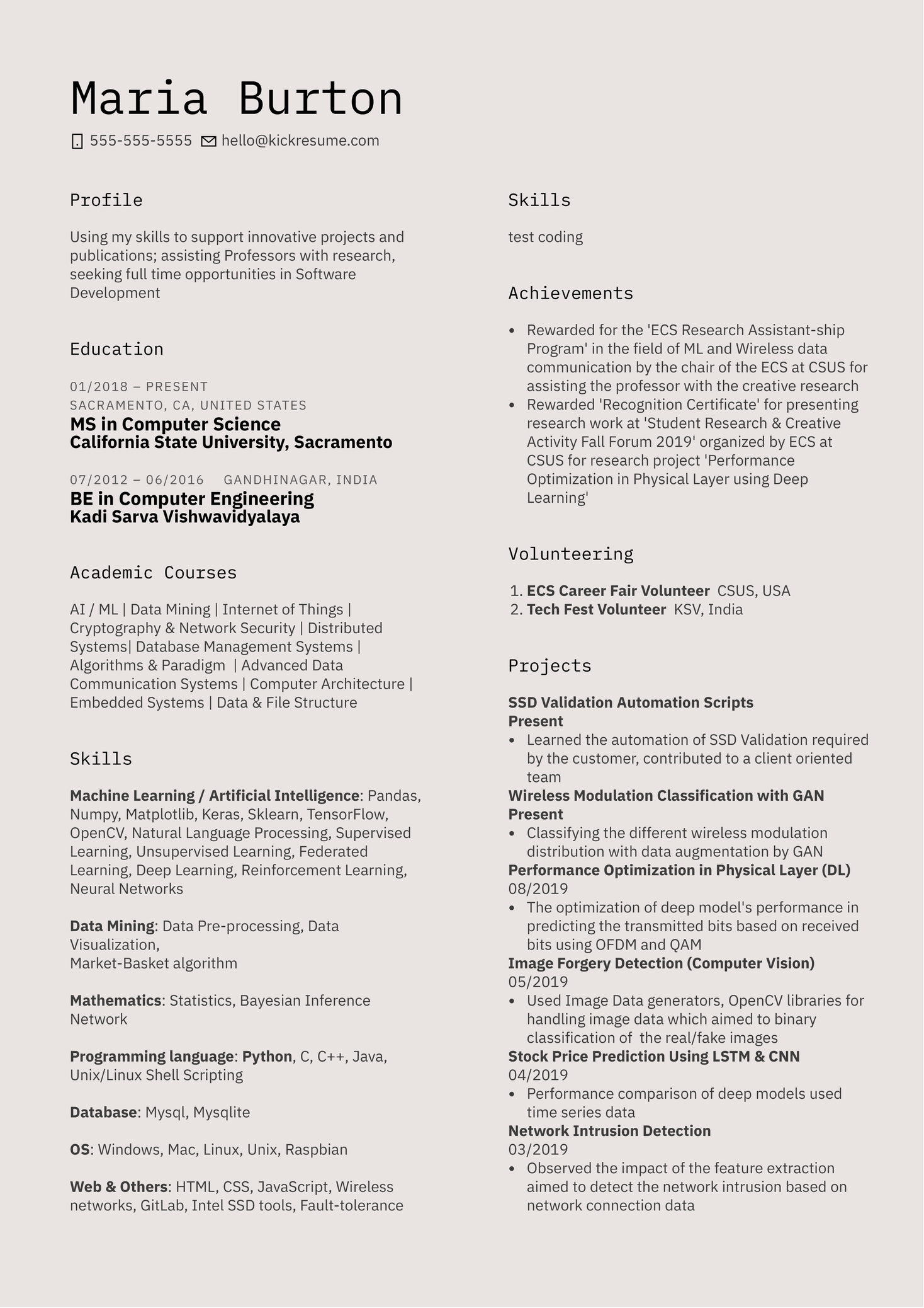 Intel Graduate Intern Resume Example Kickresume
