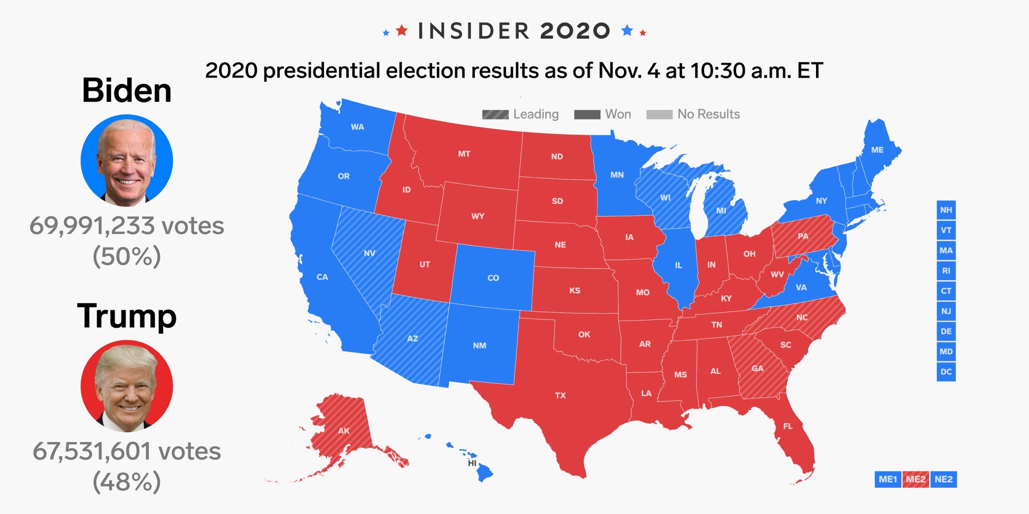 Insider On Twitter As Of 10 30 A M Et There Is Not Yet A Clear Winner Of The Us Presidential Election But Both Candidates Still Have Very Viable Paths To Earn 270 Electoral